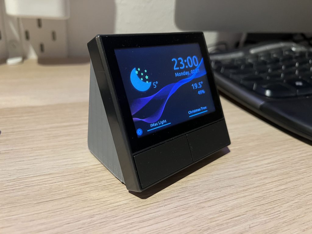 The SONOFF NSPanel is not actually intended to be a desk controller. It was a kickstarted product from SONOFF to build a combined 1-gang dual light switch controller with a touchscreen interface. The problem is that for most people, their light switches are not actually at the height you would want a touchscreen to be. But you can convert the NSPanel to run on a USB cable, put it in a 3D-printed case, flash the firmware so it runs on ESPHome, and put it on your desk. I used Mark Watt’s guide on YouTube for step-by-step instructions to convert my NSPanel.